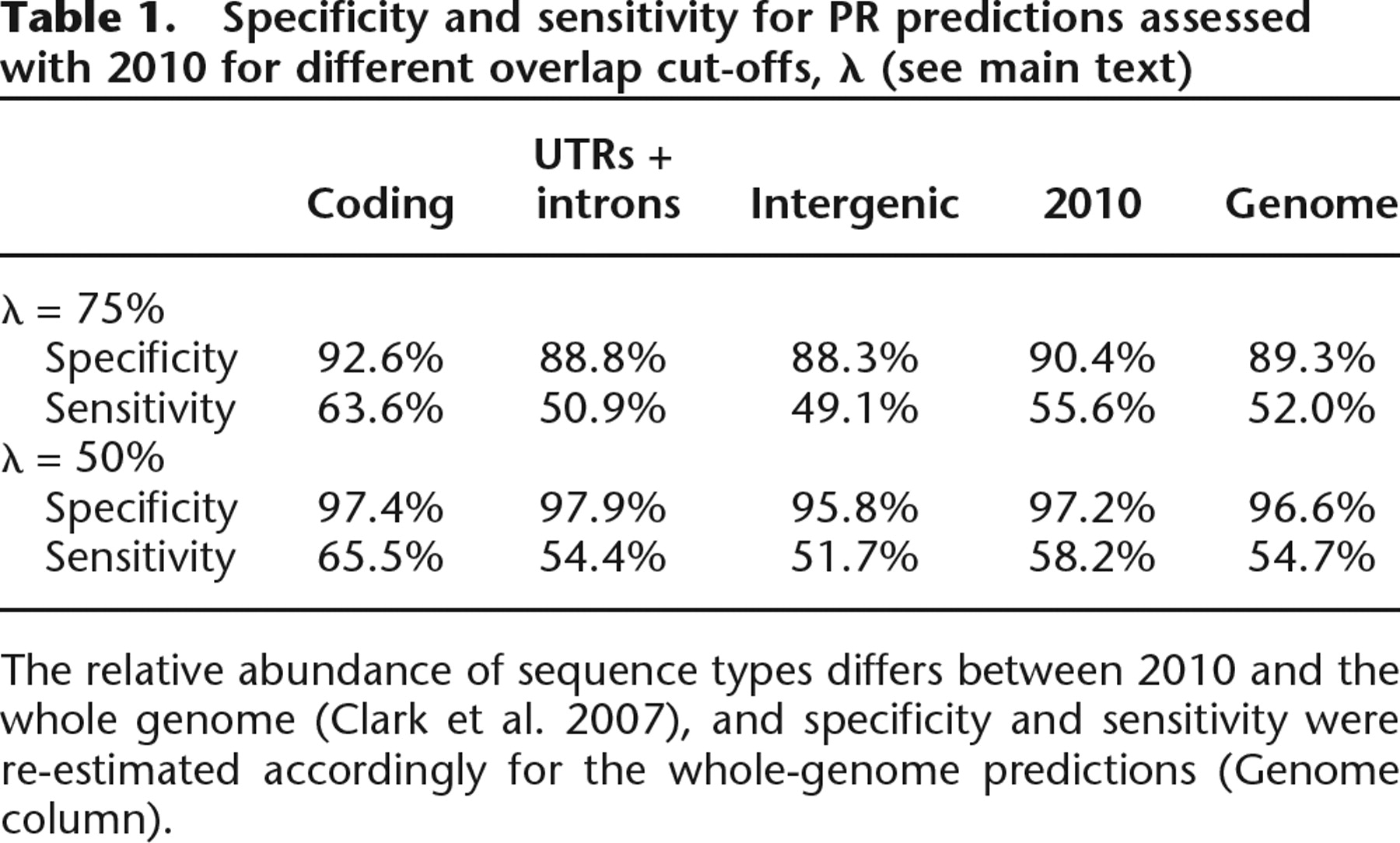 The relative abundance of sequence types differs between 2010 and the whole genome (Clark et al. 2007), and specificity and sensitivity were re-estimated accordingly for the whole-genome predictions (Genome column).