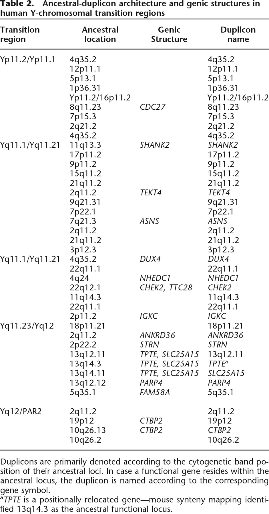 Ancestral-duplicon architecture and genic structures in human Y-chromosomal transition regions