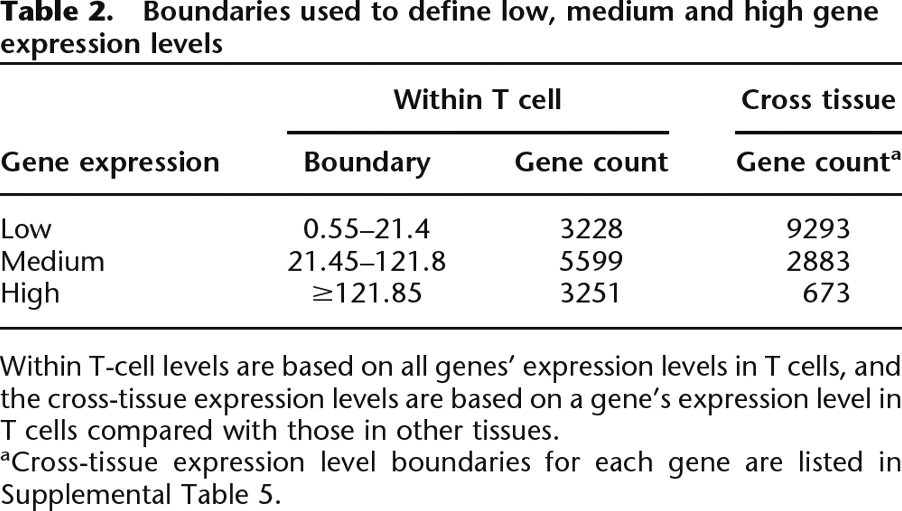 aCross-tissue expression level boundaries for each gene are listed in Supplemental Table 5.