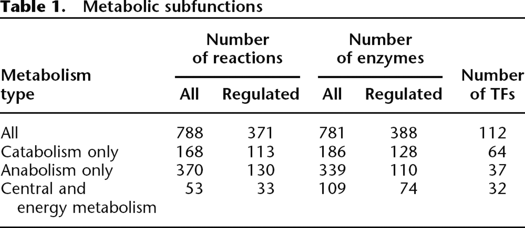 Metabolic subfunctions