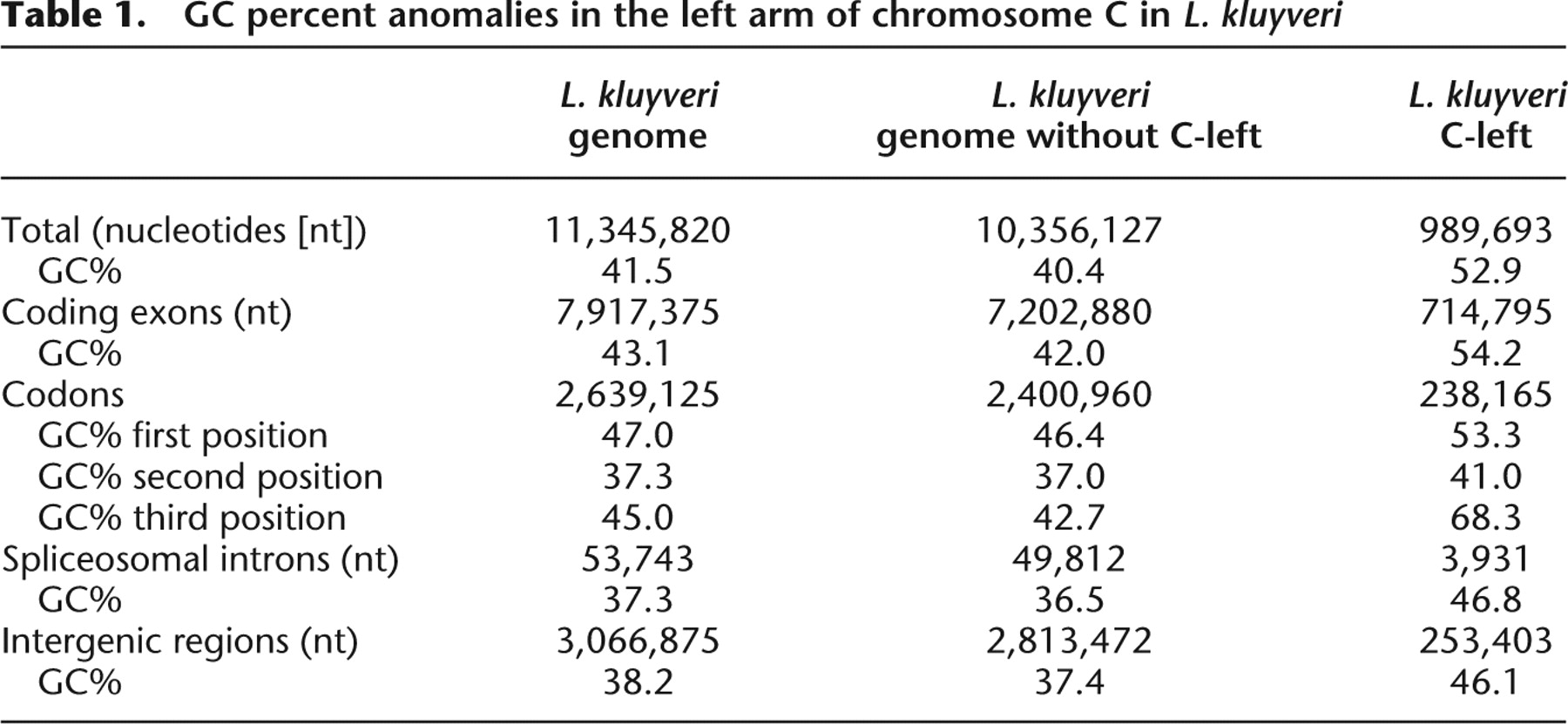 GC percent anomalies in the left arm of chromosome C in L. kluyveri