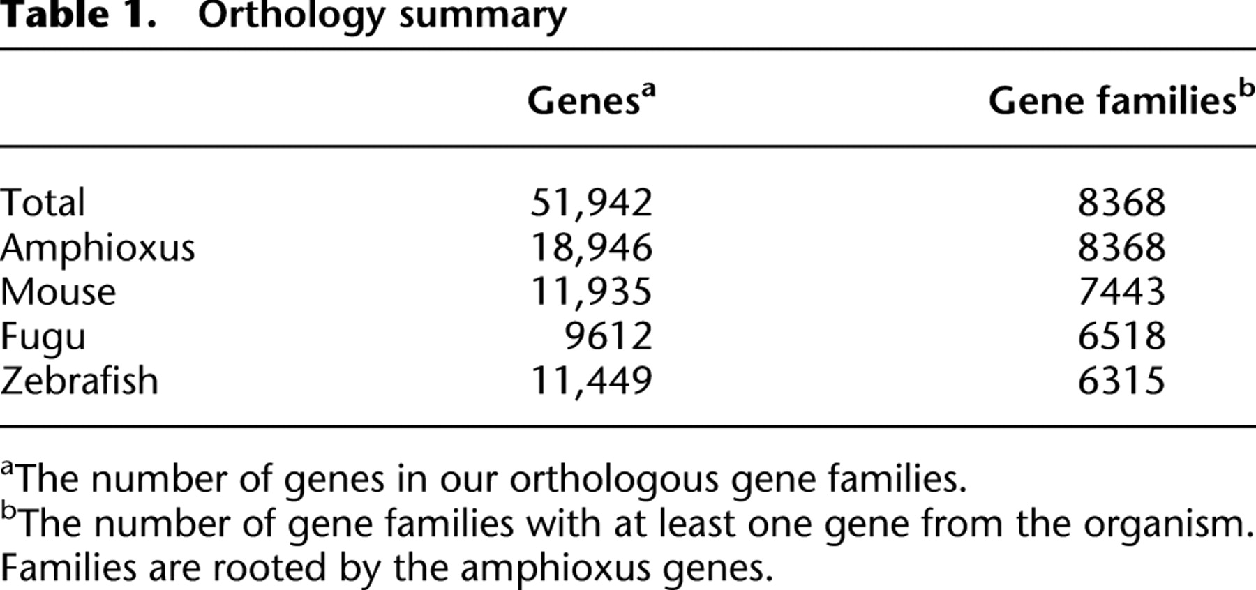 bThe number of gene families with at least one gene from the organism. Families are rooted by the amphioxus genes.
