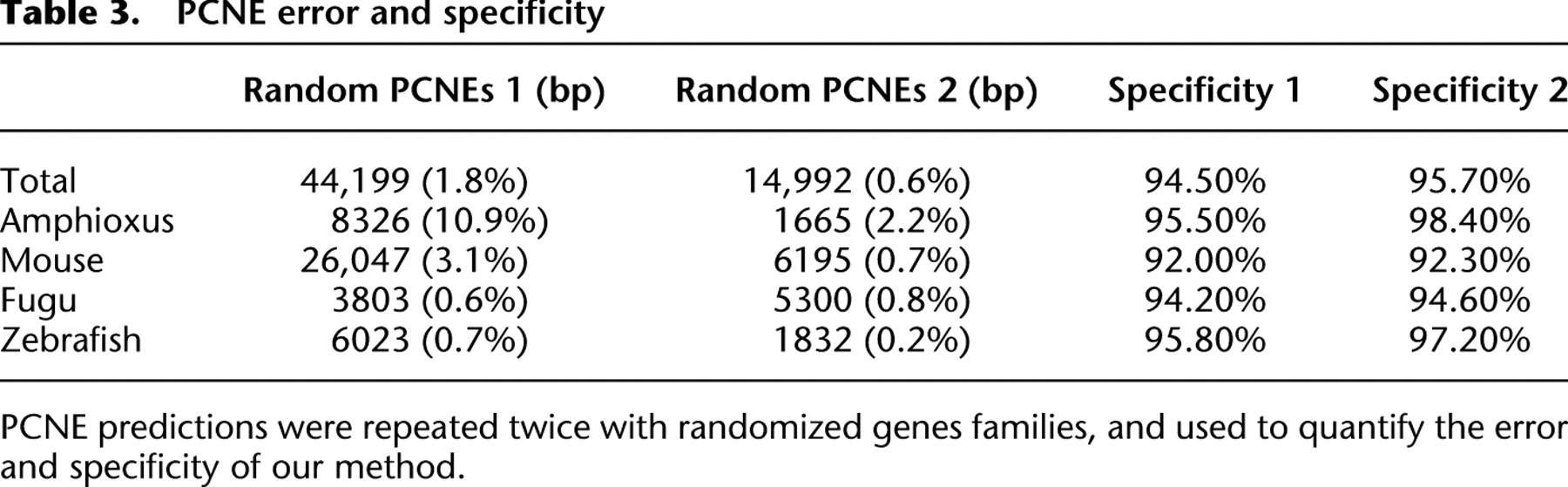 PCNE predictions were repeated twice with randomized genes families, and used to quantify the error and specificity of our method.