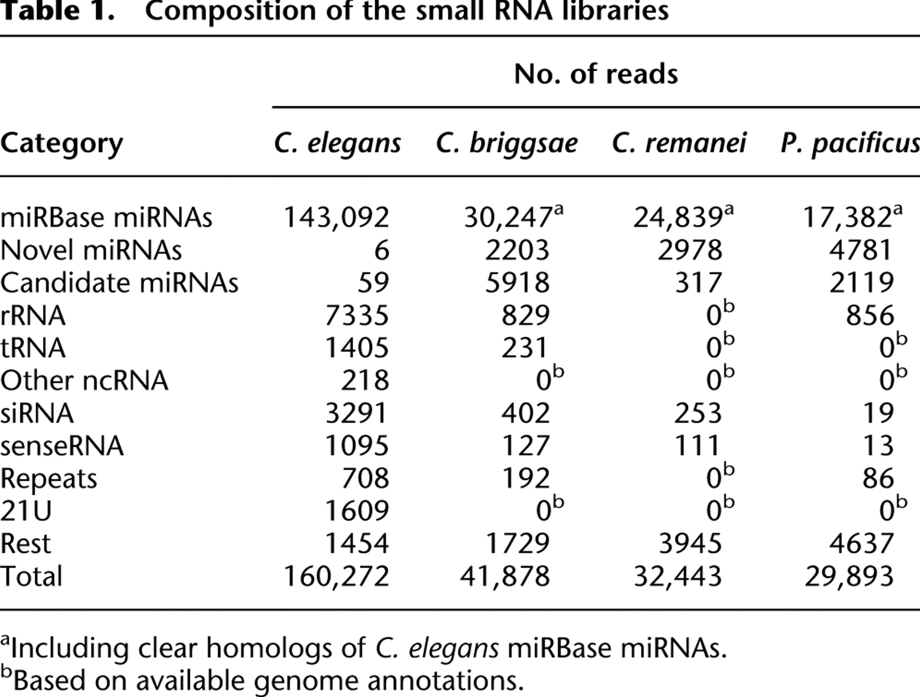aIncluding clear homologs of C. elegans miRBase miRNAs.