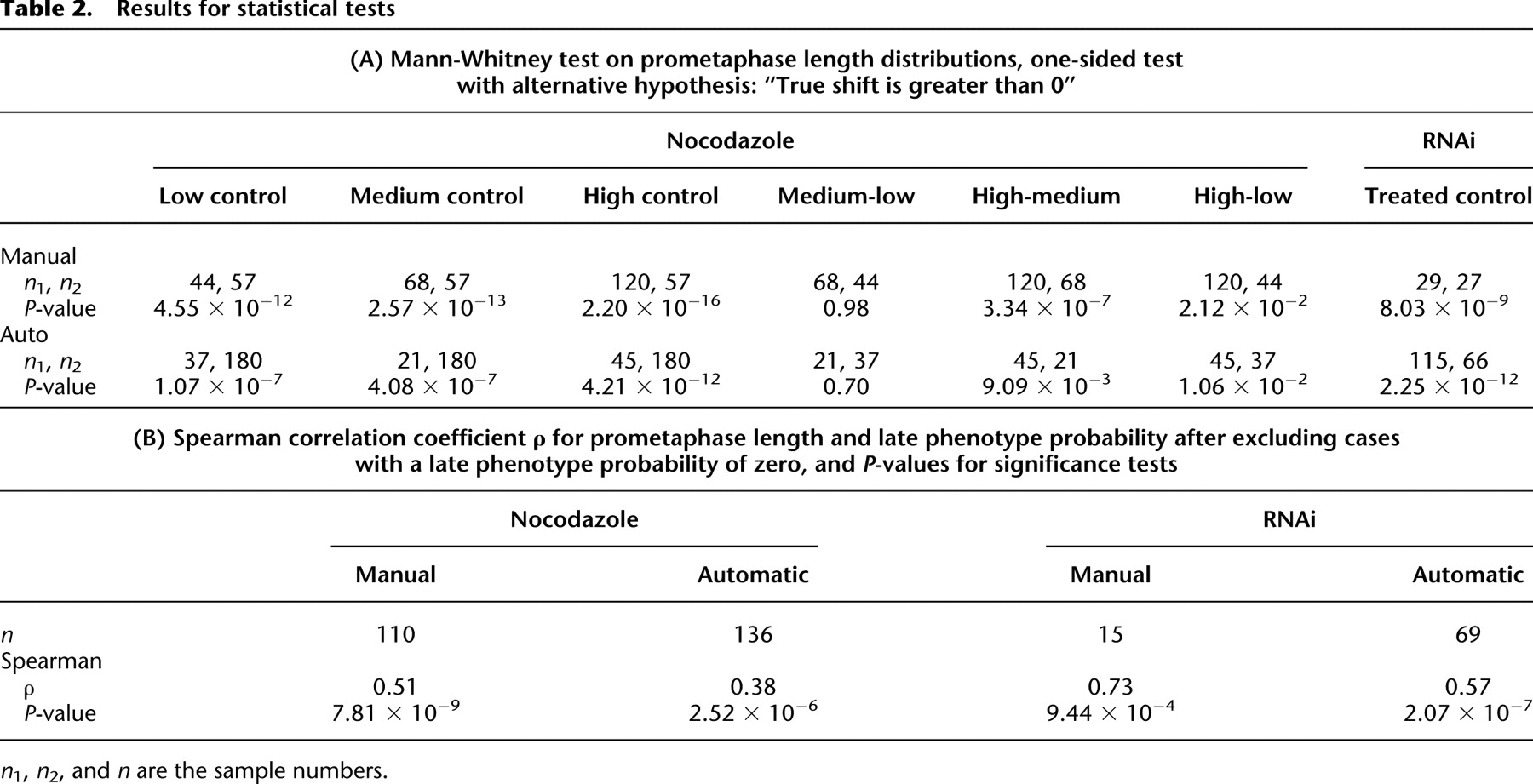 Results for statistical tests