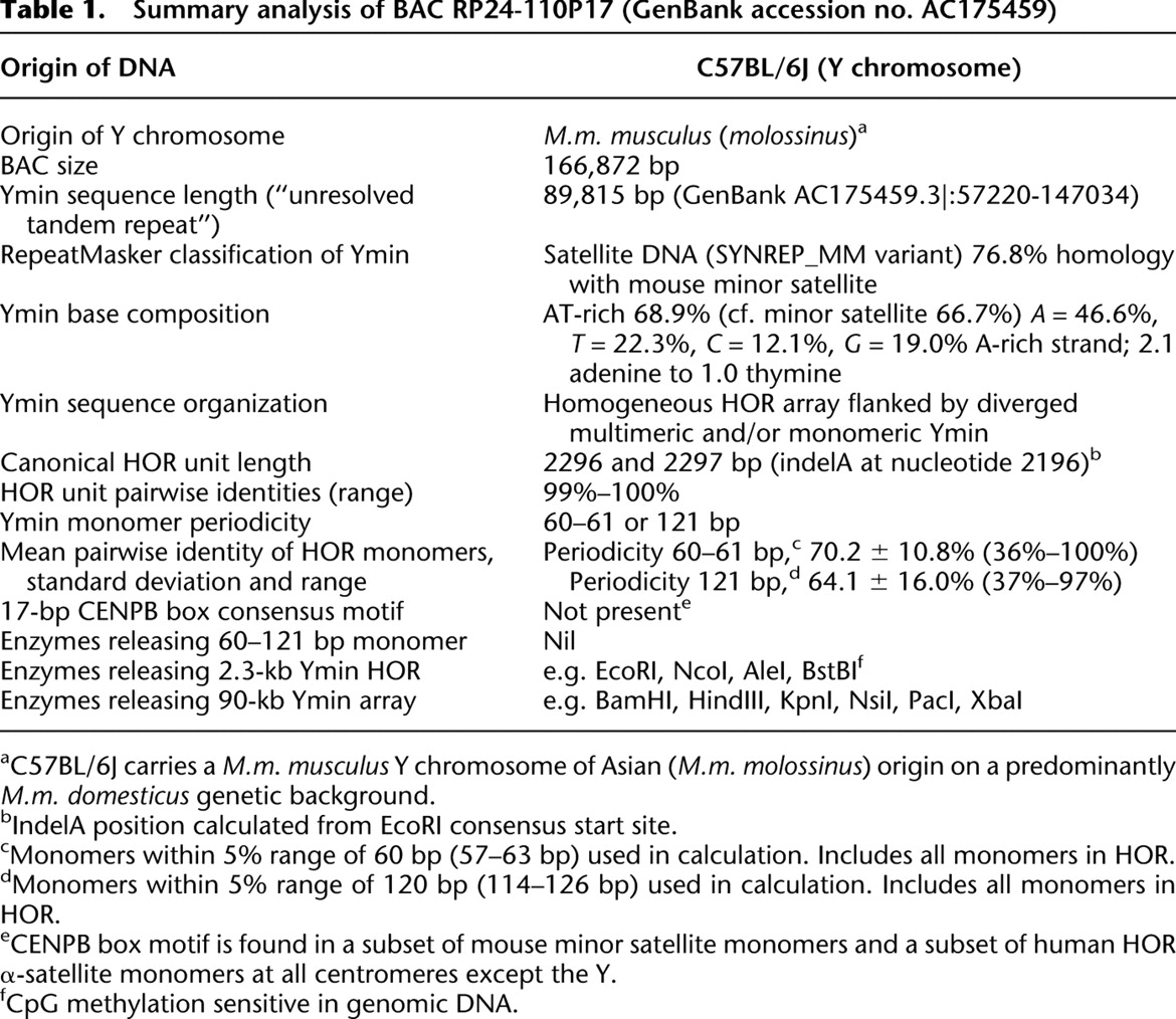 dMonomers within 5% range of 120 bp (114–126 bp) used in calculation. Includes all monomers in HOR.