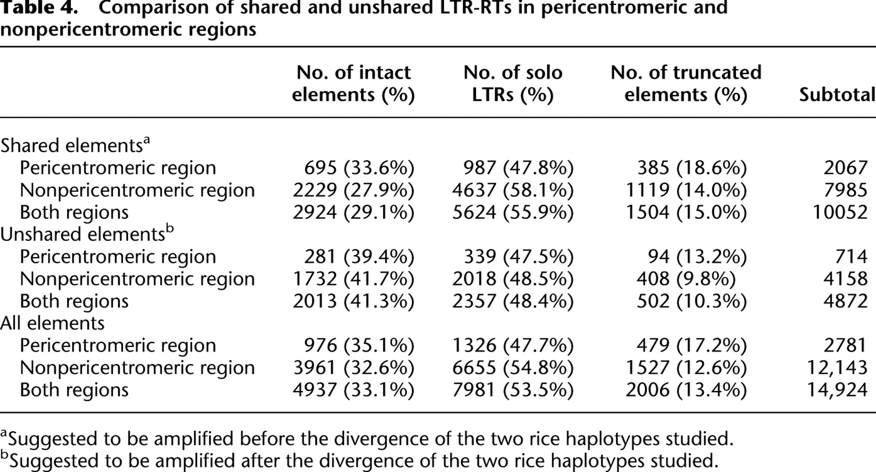 aSuggested to be amplified before the divergence of the two rice haplotypes studied.