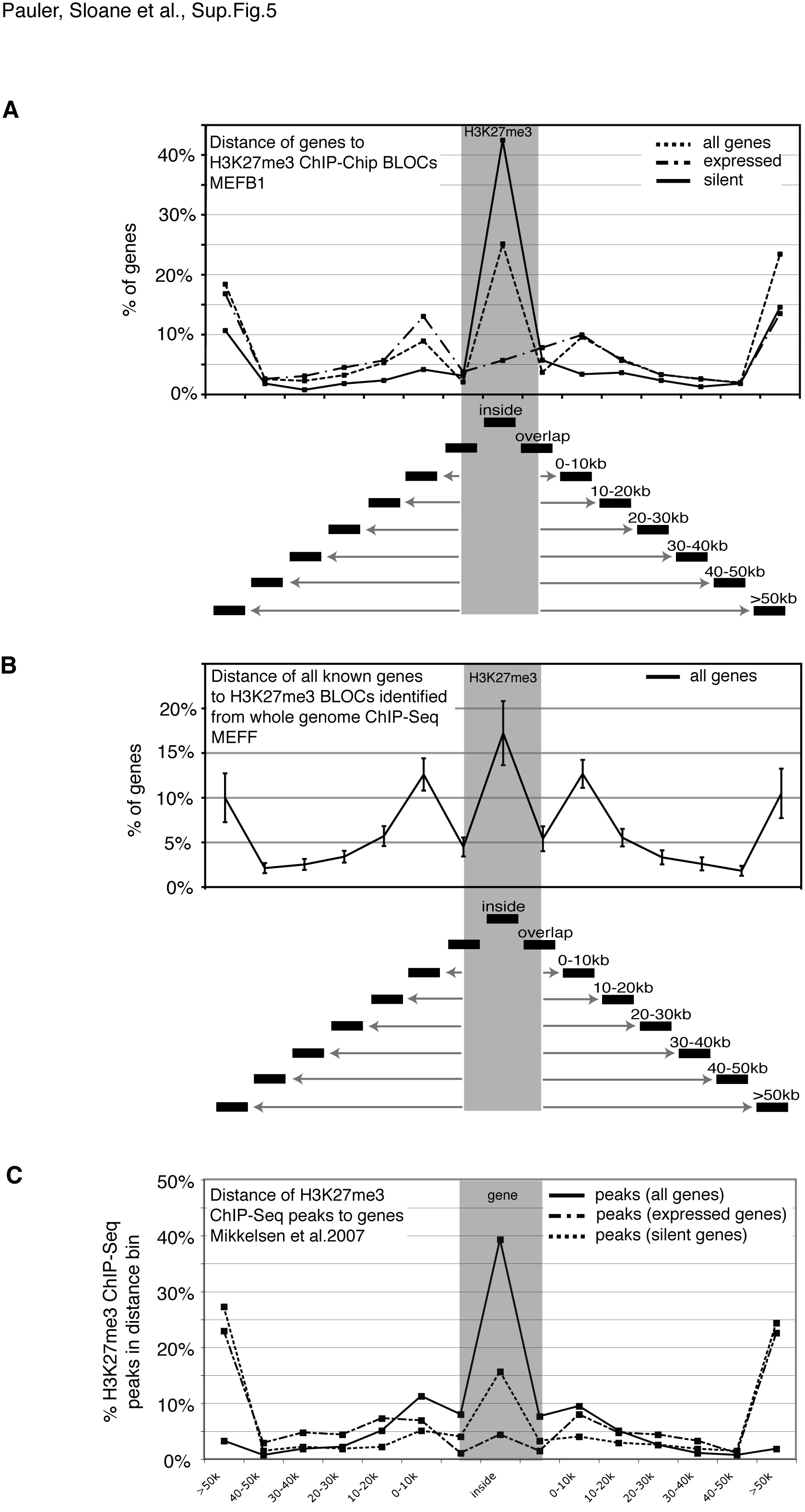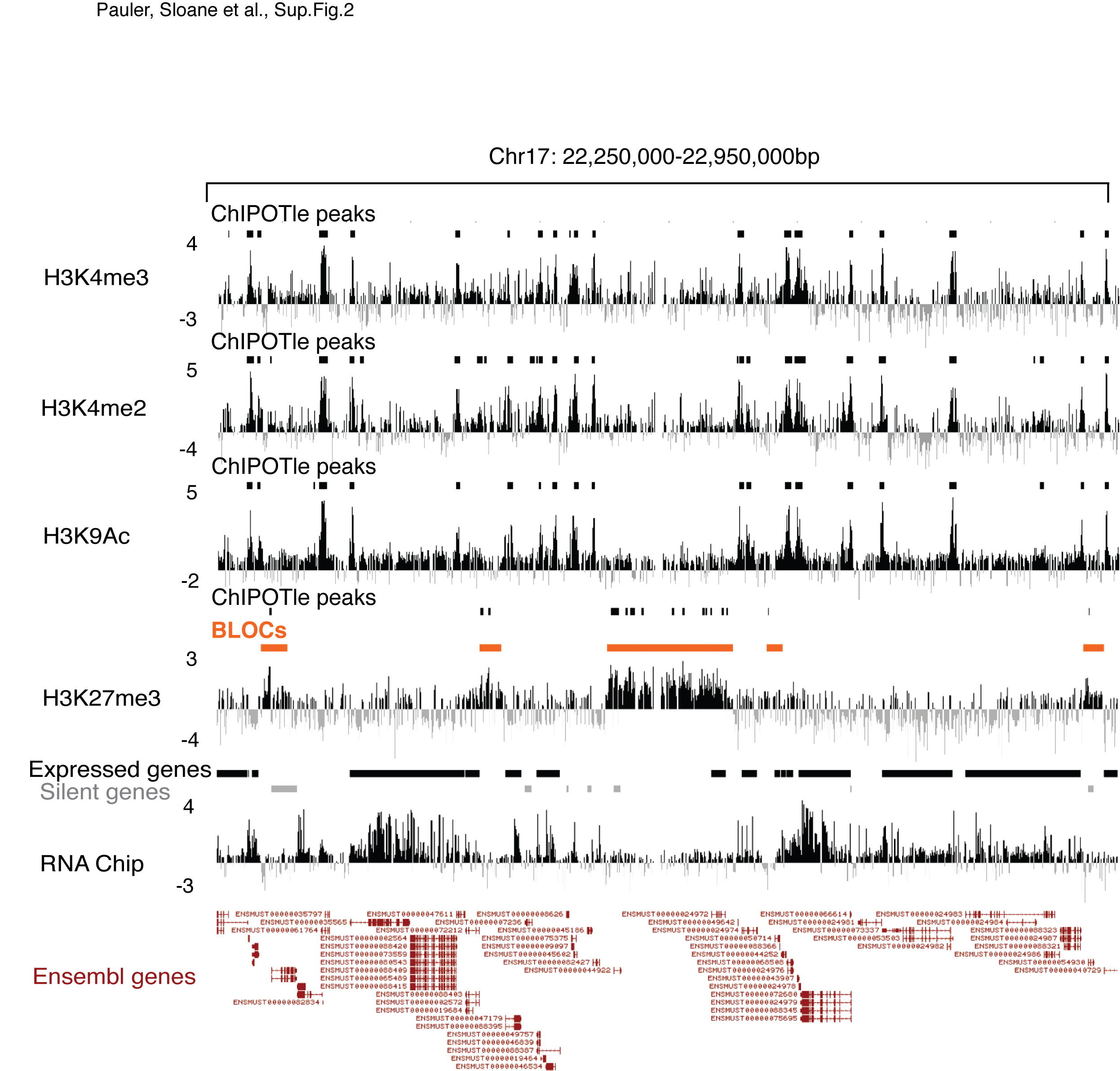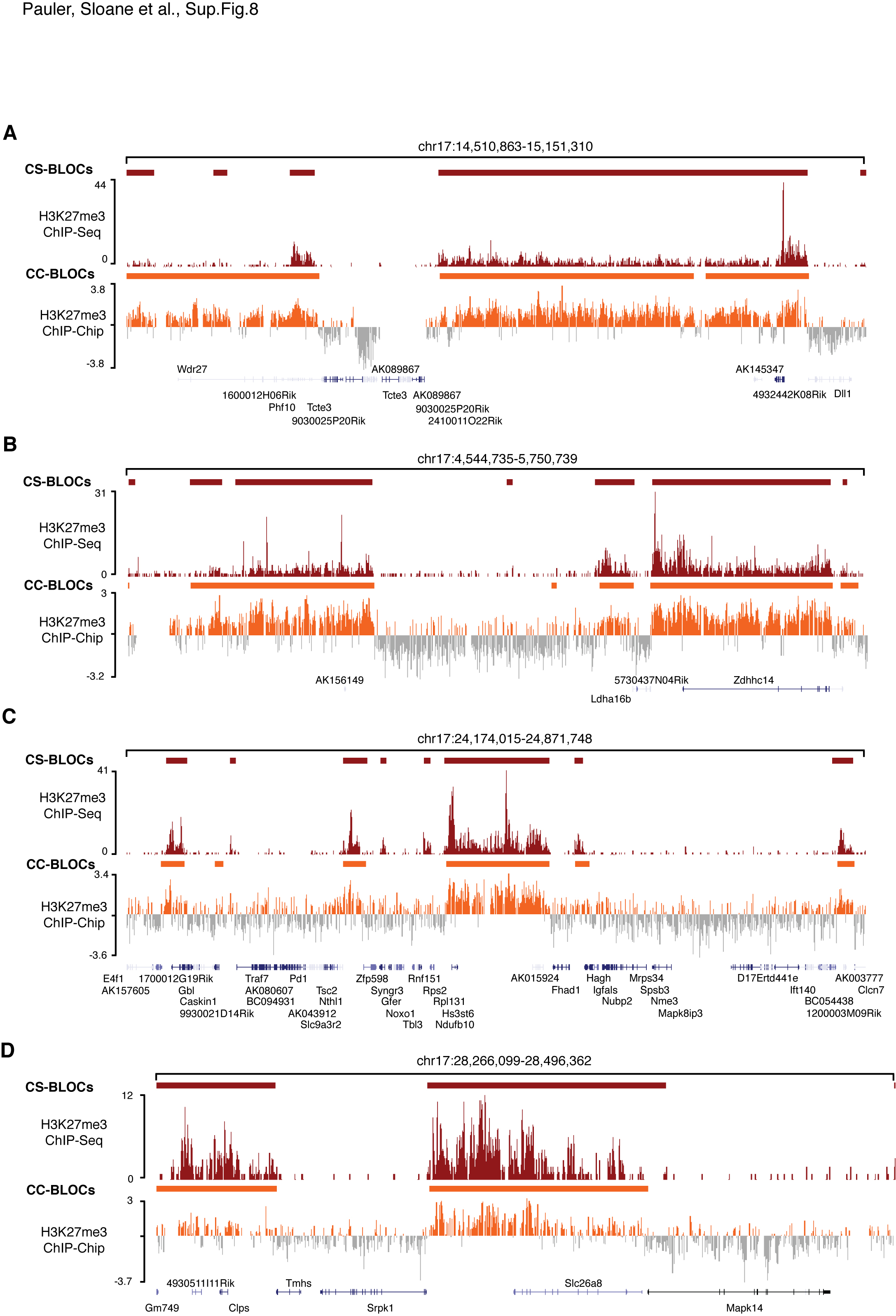 H3K27me3 forms BLOCs over silent genes and intergenic regions and specifies a histone banding pattern on a mouse autosomal chromosome