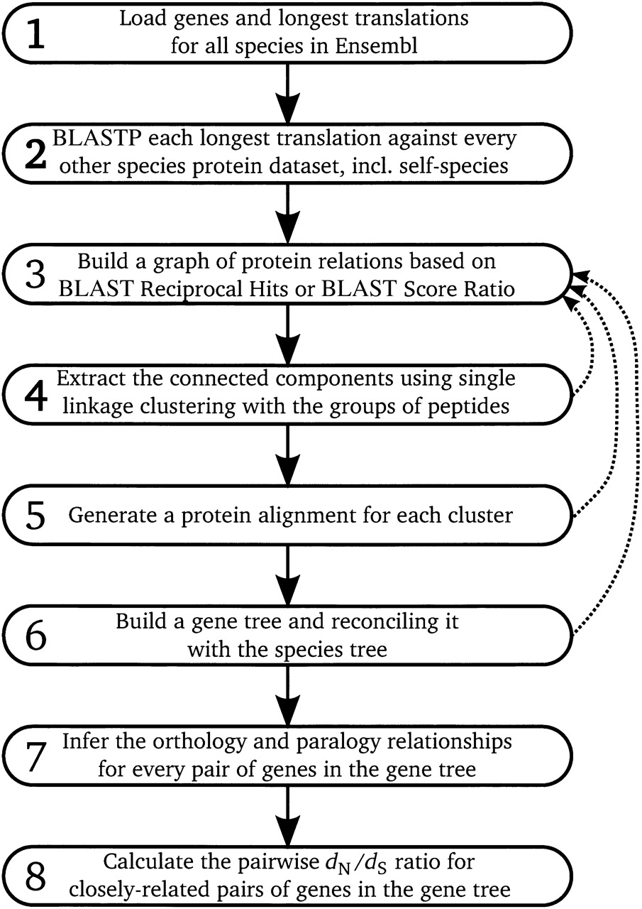 Computational pipeline for the EnsemblCompara process.