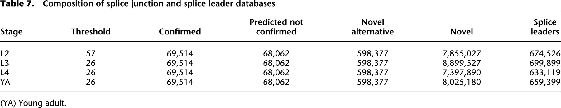 Composition of splice junction and splice leader databases