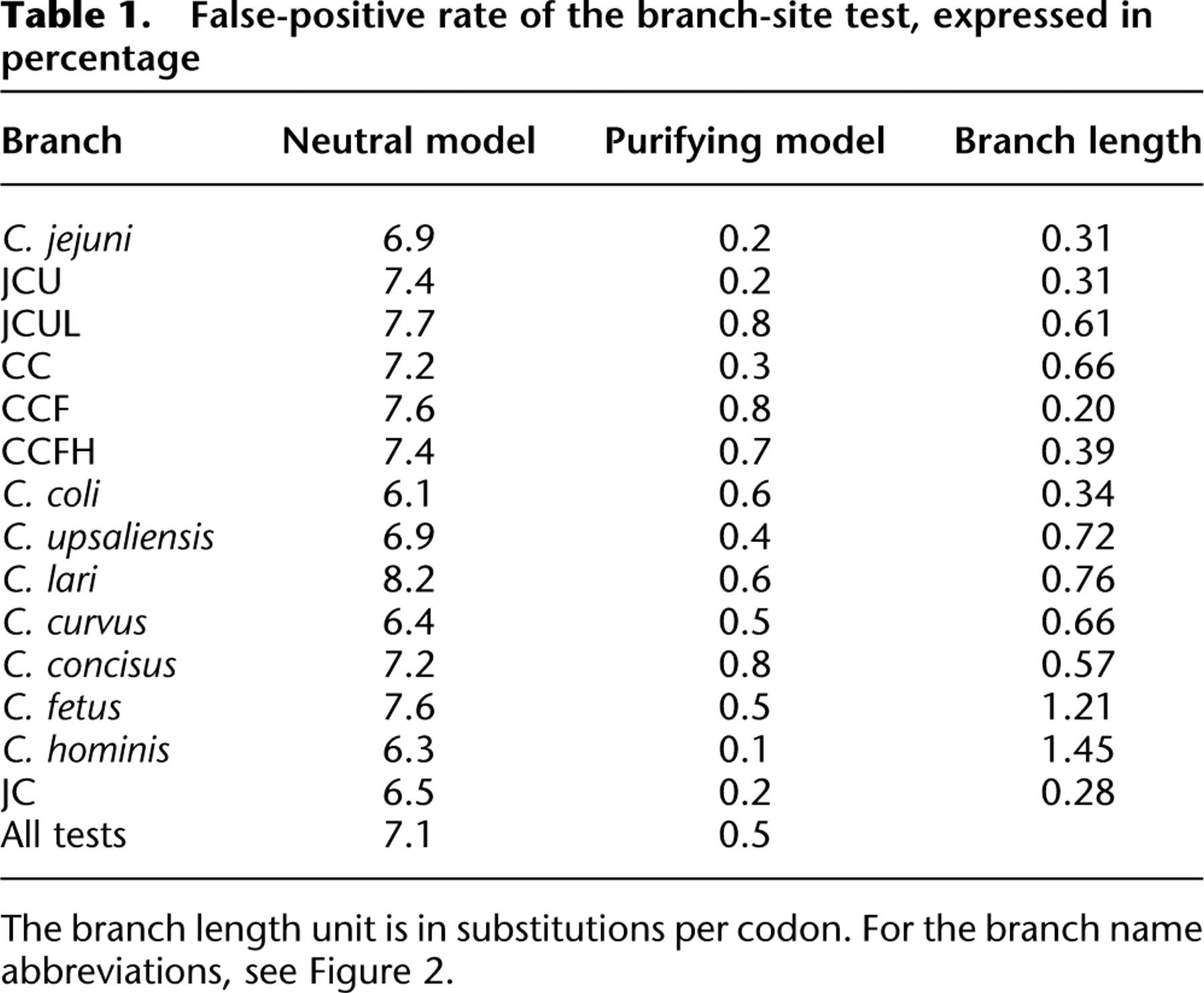 The branch length unit is in substitutions per codon. For the branch name abbreviations, see Figure 2.