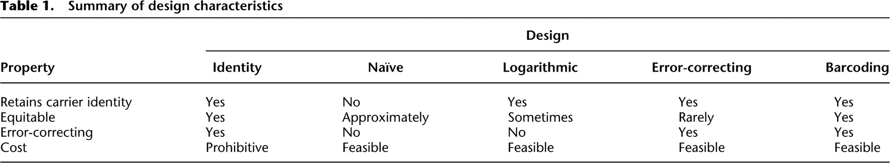 Summary of design characteristics