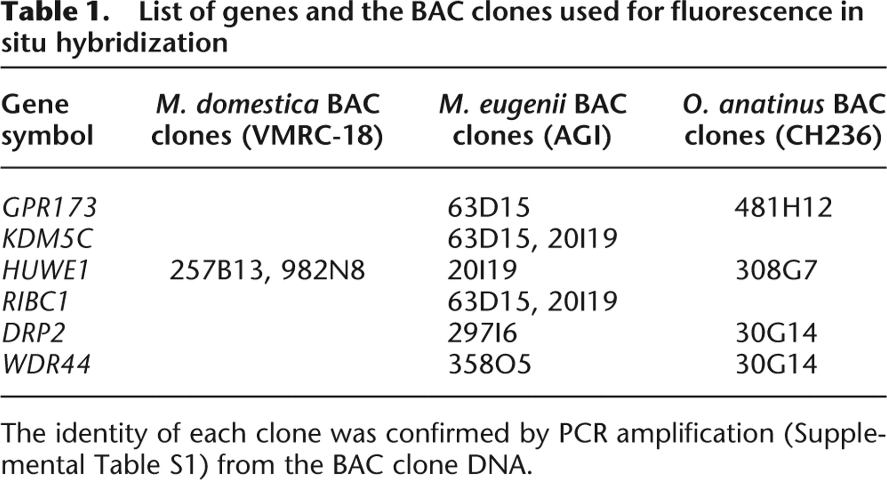List of genes and the BAC clones used for fluorescence in situ hybridization