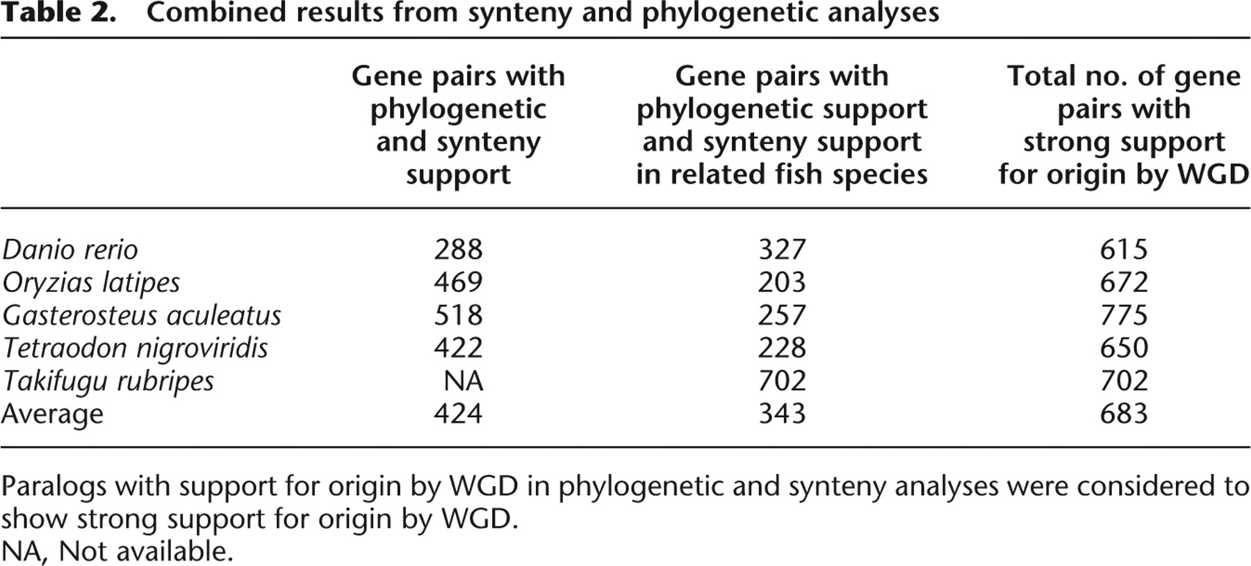 Paralogs with support for origin by WGD in phylogenetic and synteny analyses were considered to show strong support for origin by WGD.