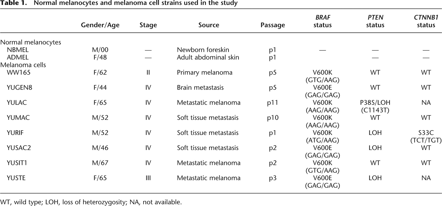 Normal melanocytes and melanoma cell strains used in the study
