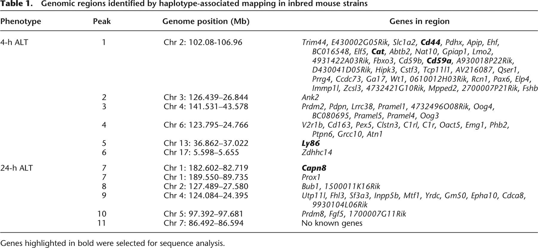 Genomic regions identified by haplotype-associated mapping in inbred mouse strains