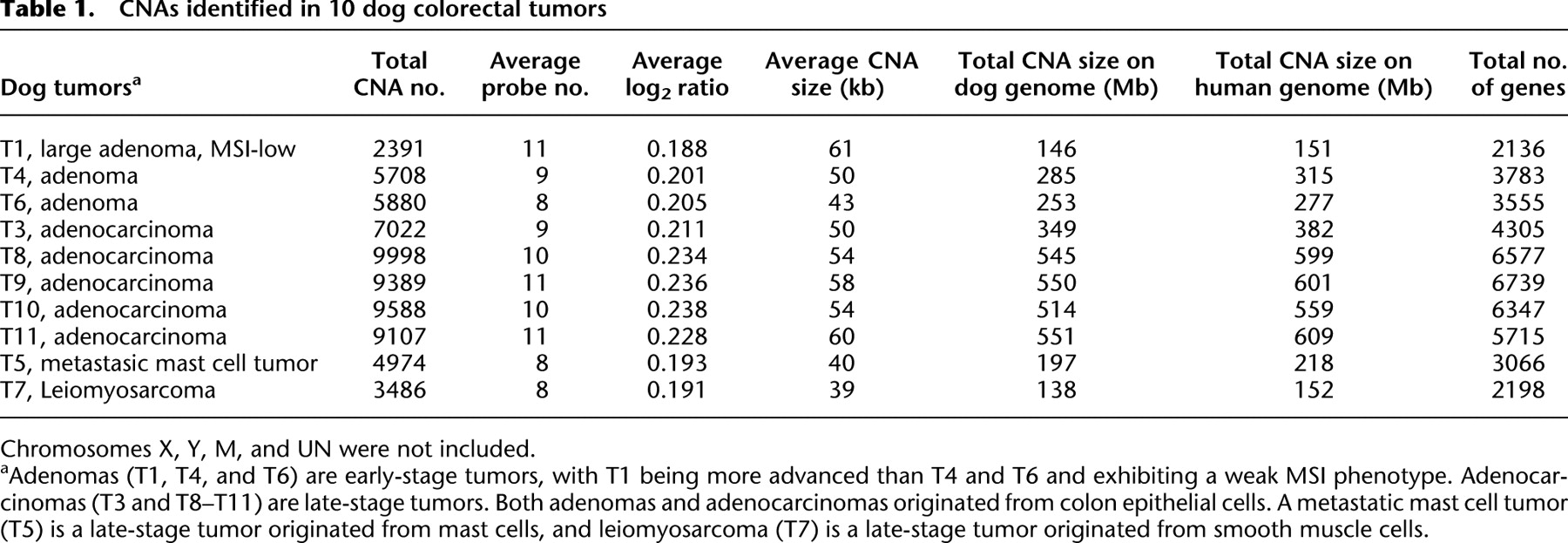 Copy number abnormalities in sporadic canine colorectal cancers