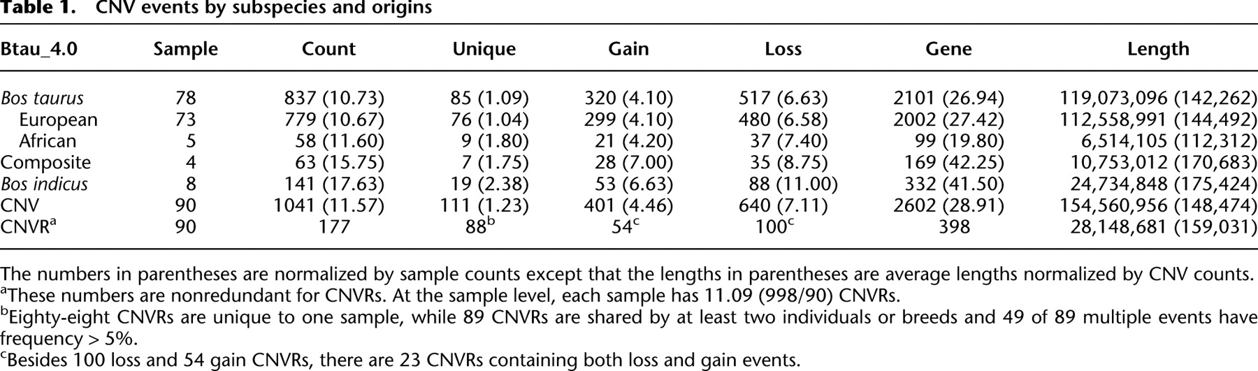 Analysis of copy number variations among diverse cattle breeds