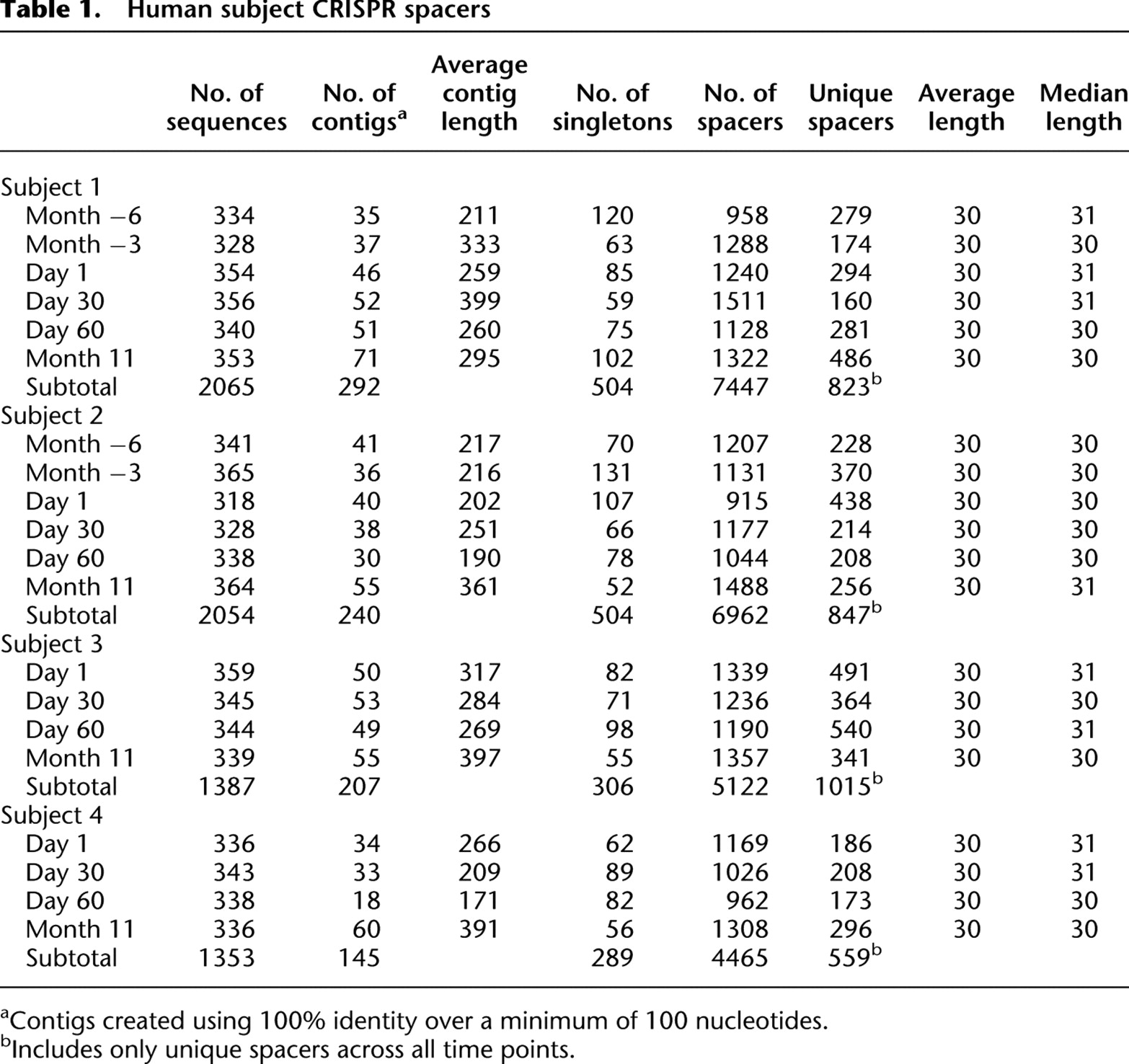 Analysis of streptococcal CRISPRs from human saliva reveals substantial sequence diversity within and between subjects over time