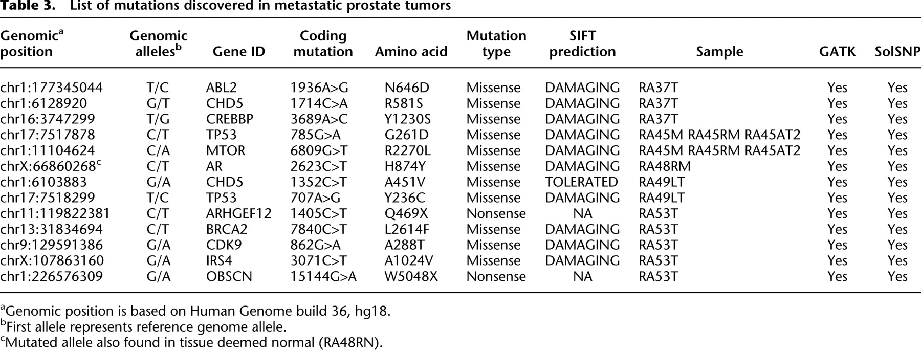 Copy number and targeted mutational analysis reveals novel somatic events in metastatic prostate tumors