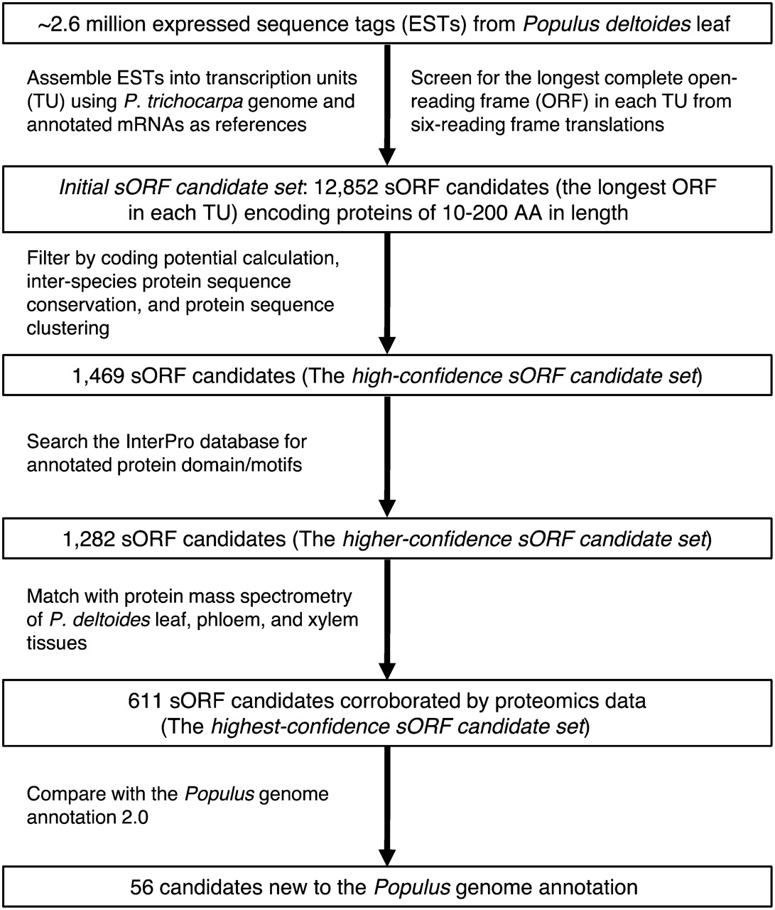 The strategy for large-scale discovery of small proteins in Populus deltoides.