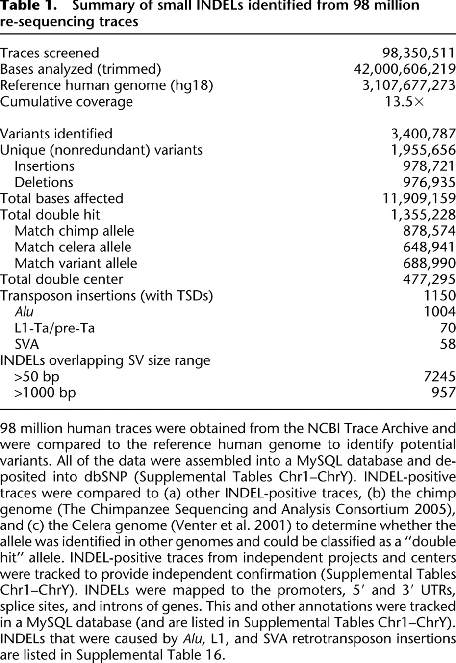 Natural genetic variation caused by small insertions and deletions in the human genome