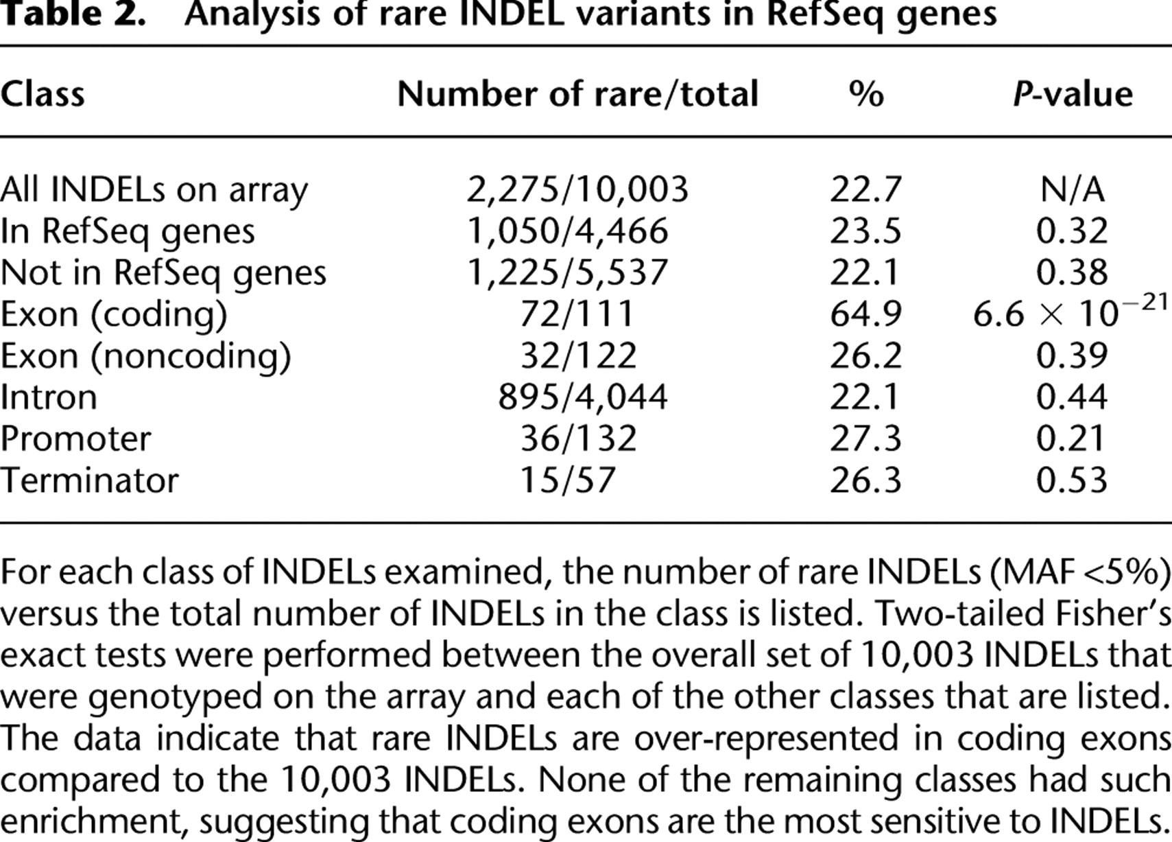 Natural genetic variation caused by small insertions and deletions in the human genome