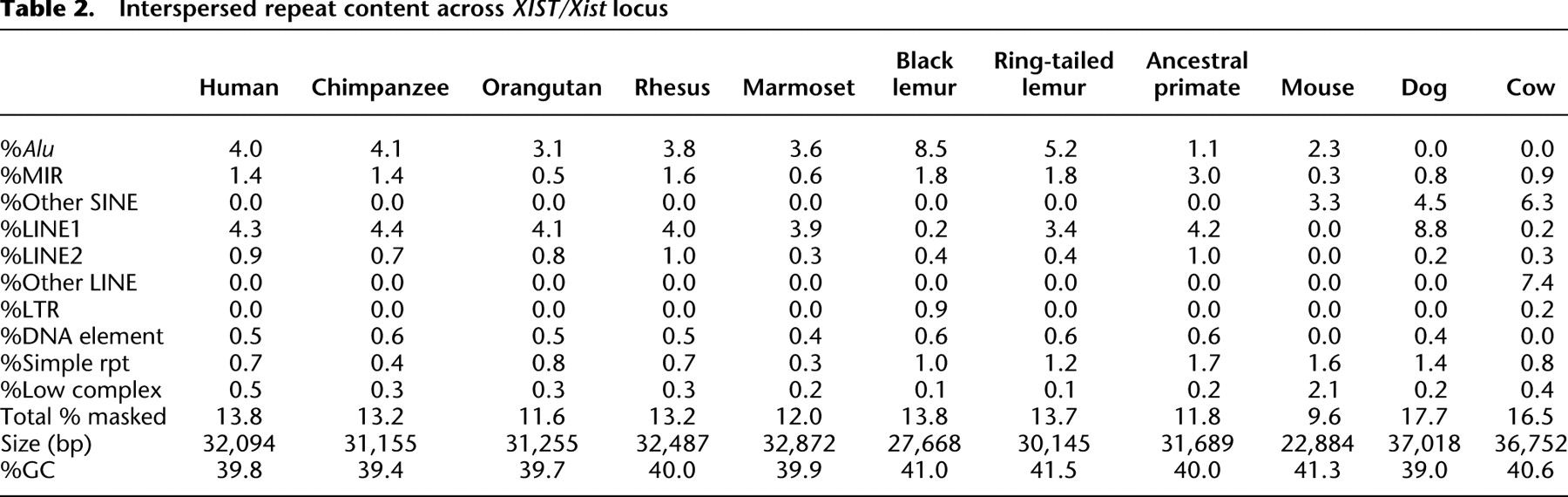 Comparative analysis of the primate X-inactivation center region and reconstruction of the ancestral primate XIST locus