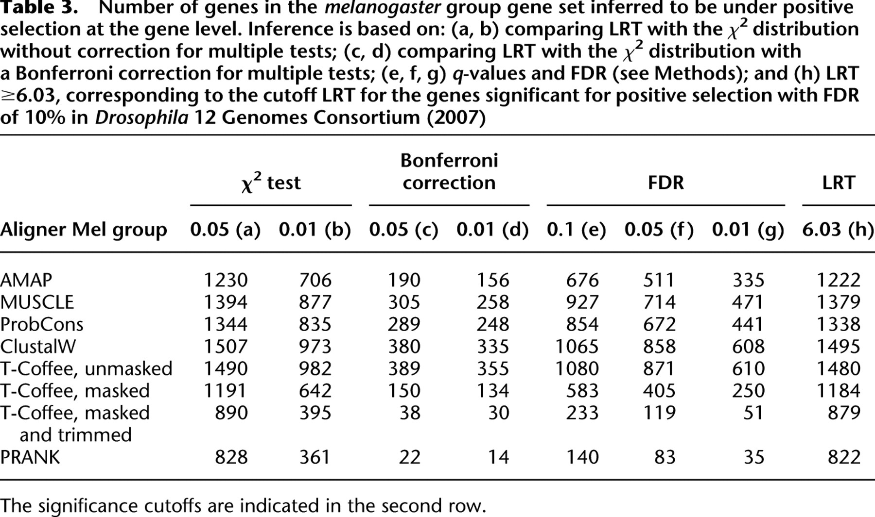 High sensitivity to aligner and high rate of false positives in the estimates of positive selection in the 12