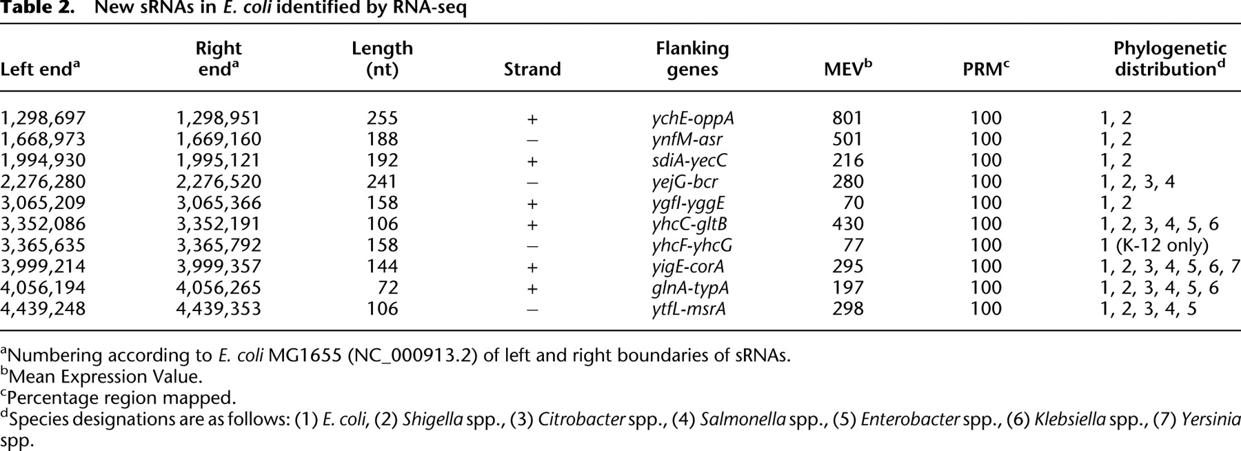 Genome-wide detection of novel regulatory RNAs in E. coli