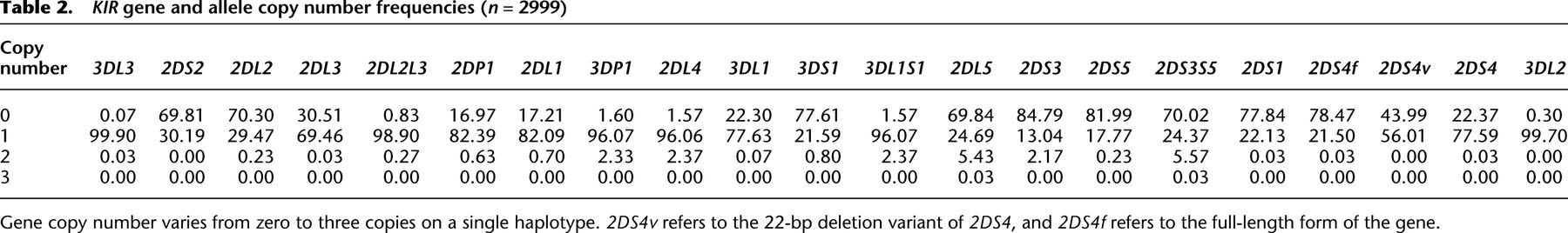 Copy number variation leads to considerable diversity for B but not A haplotypes of the human KIR genes encoding NK cell receptors