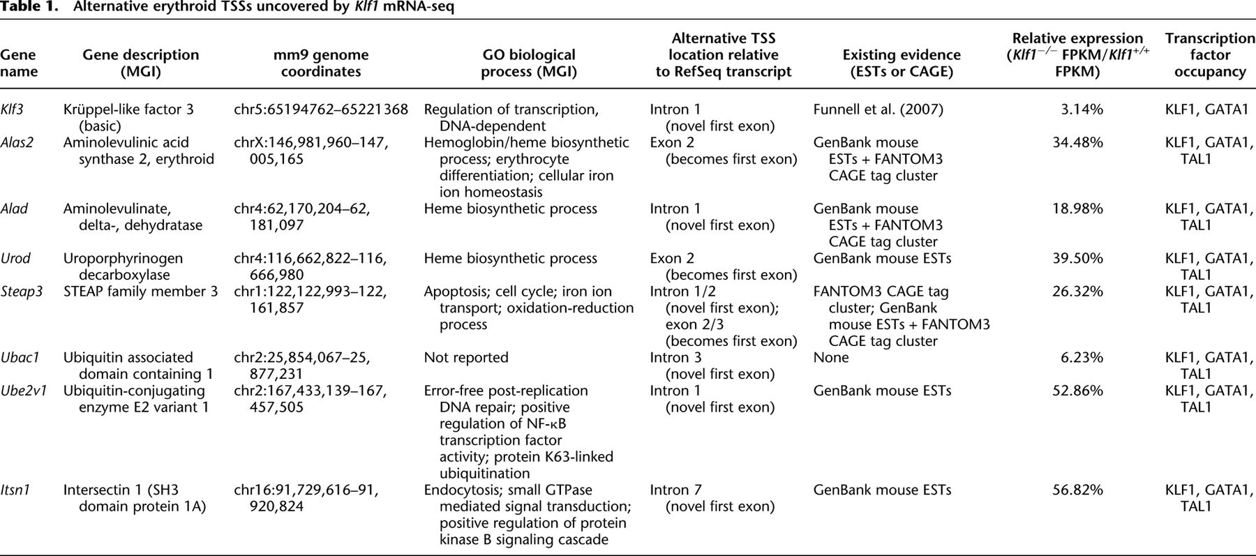 Novel roles for KLF1 in erythropoiesis revealed by mRNA-seq