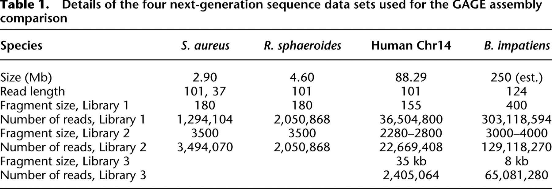GAGE: A critical evaluation of genome assemblies and assembly algorithms