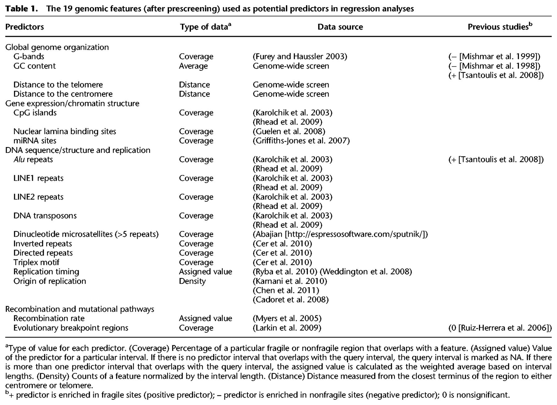 A genome-wide analysis of common fragile sites: What features determine chromosomal instability in the human genome?