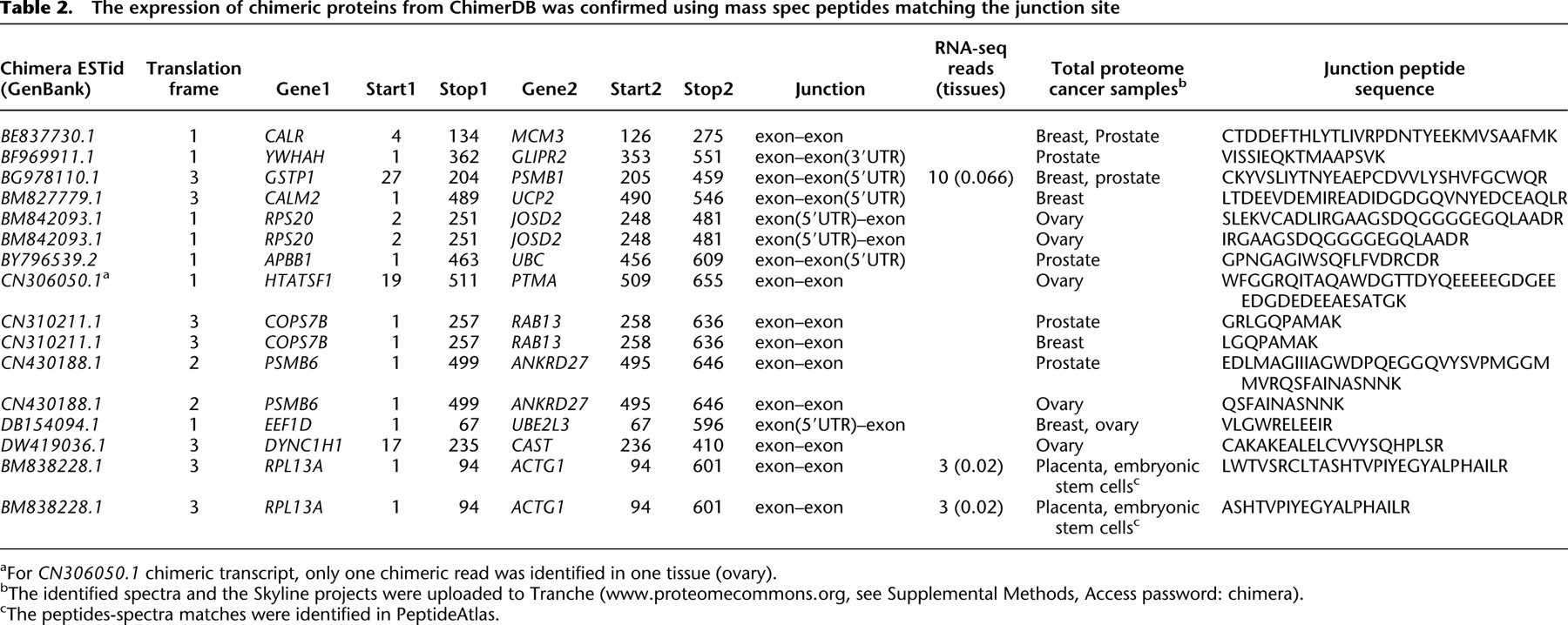 Chimeras taking shape: Potential functions of proteins encoded by chimeric RNA transcripts