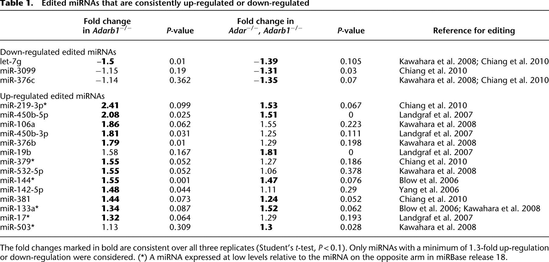 Adenosine deaminases that act on RNA induce reproducible changes in abundance and sequence of embryonic miRNAs