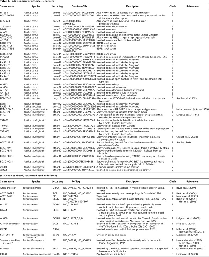 Genomic characterization of the Bacillus cereus sensu lato species: Backdrop to the evolution of Bacillus anthracis