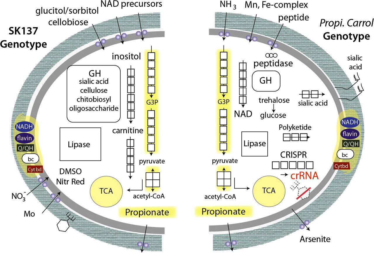 Comparison of selected functionalities that differentiate Propi. Carrol and P. acnes SK137.