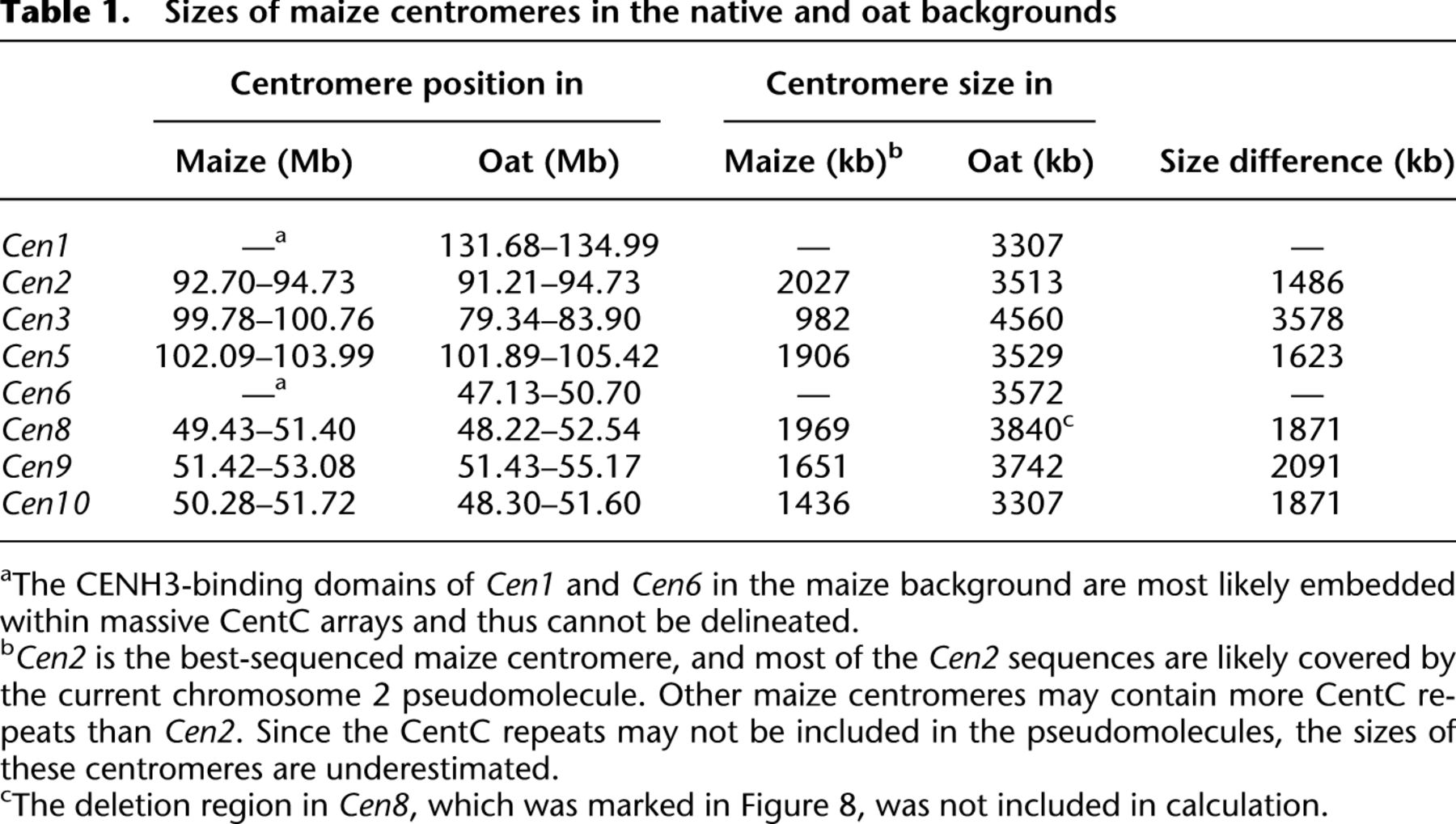 Maize centromeres expand and adopt a uniform size in the genetic background of oat