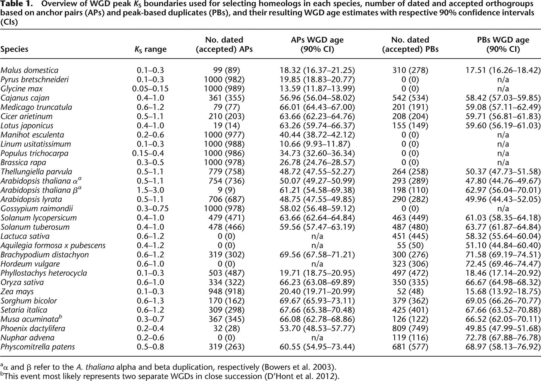 Analysis of 41 plant genomes supports a wave of successful genome duplications in association with the Cretaceous–Paleogene boundary