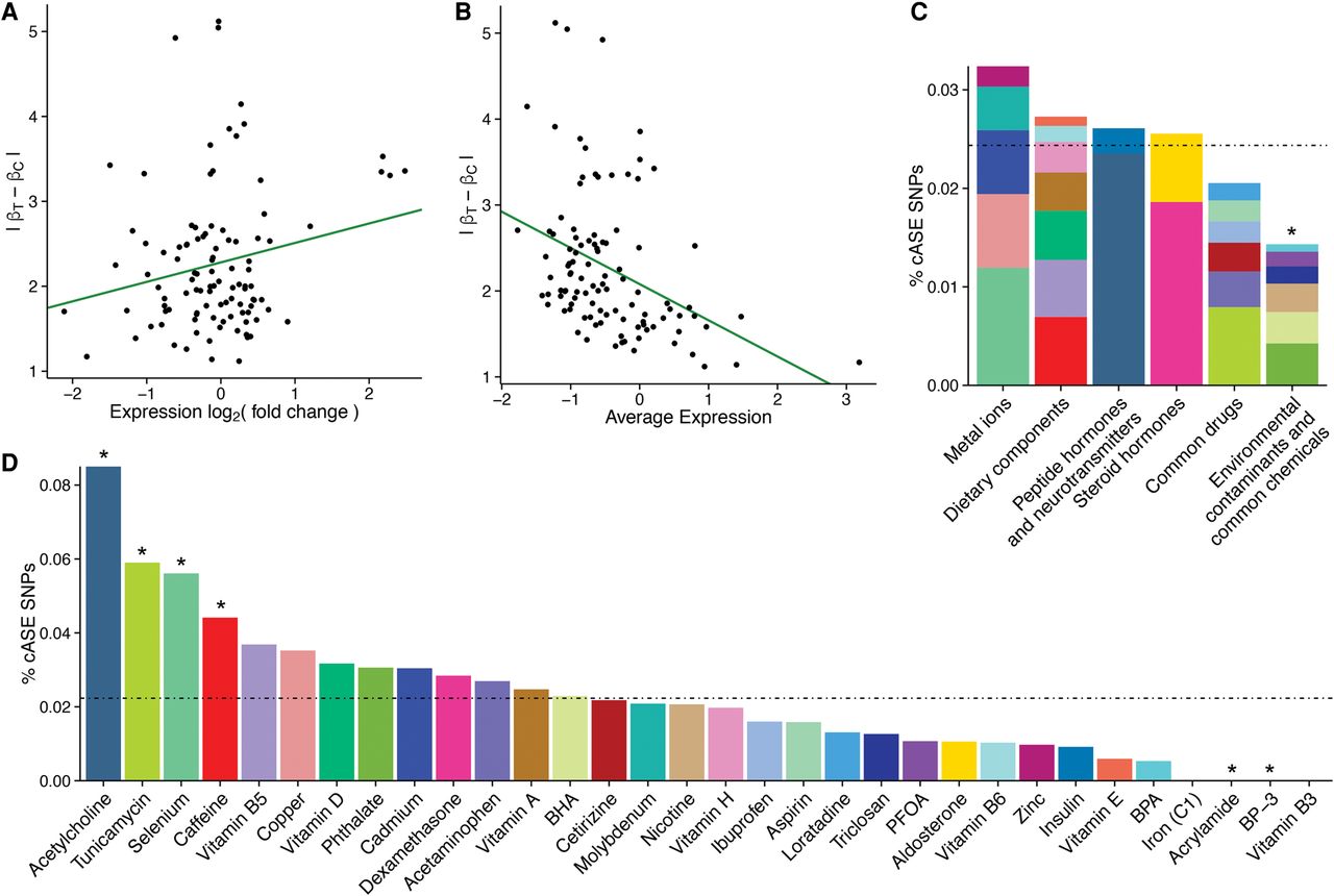 points. (C,D) Percentage of cASE SNPs identified in each treatment category (C) or treatment (D). For each group, plotted is the percentage of cASE SNPs identified, relative to the number of SNPs tested for that group.