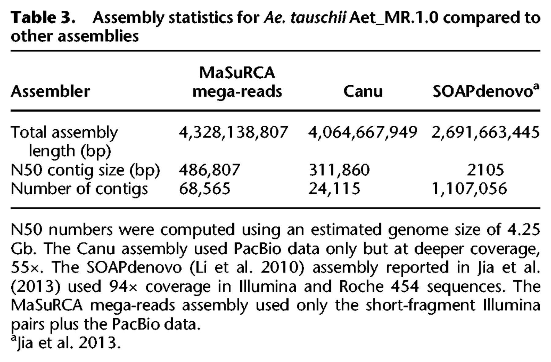 Hybrid assembly of the large and highly repetitive genome of Aegilops tauschii, a progenitor of bread wheat, with the MaSuRCA mega-reads algorithm