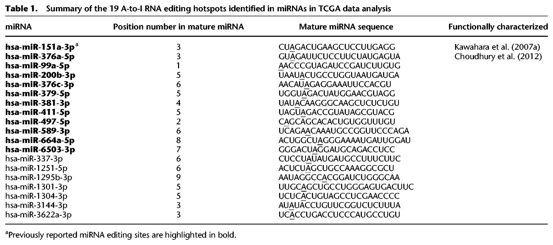 Systematic characterization of A-to-I RNA editing hotspots in microRNAs across human cancers