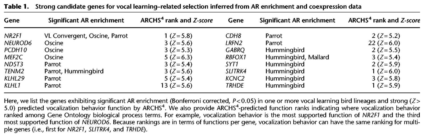 Positive selection in noncoding genomic regions of vocal learning birds is associated with genes implicated in vocal learning and speech functions in humans