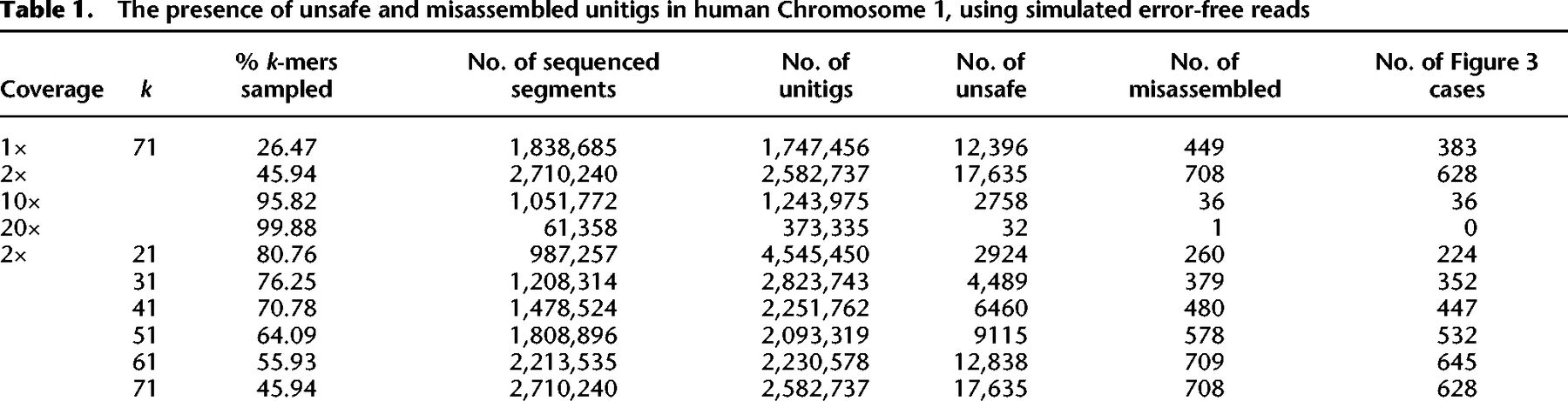Assembler artifacts include misassembly because of unsafe unitigs and underassembly because of bidirected graphs