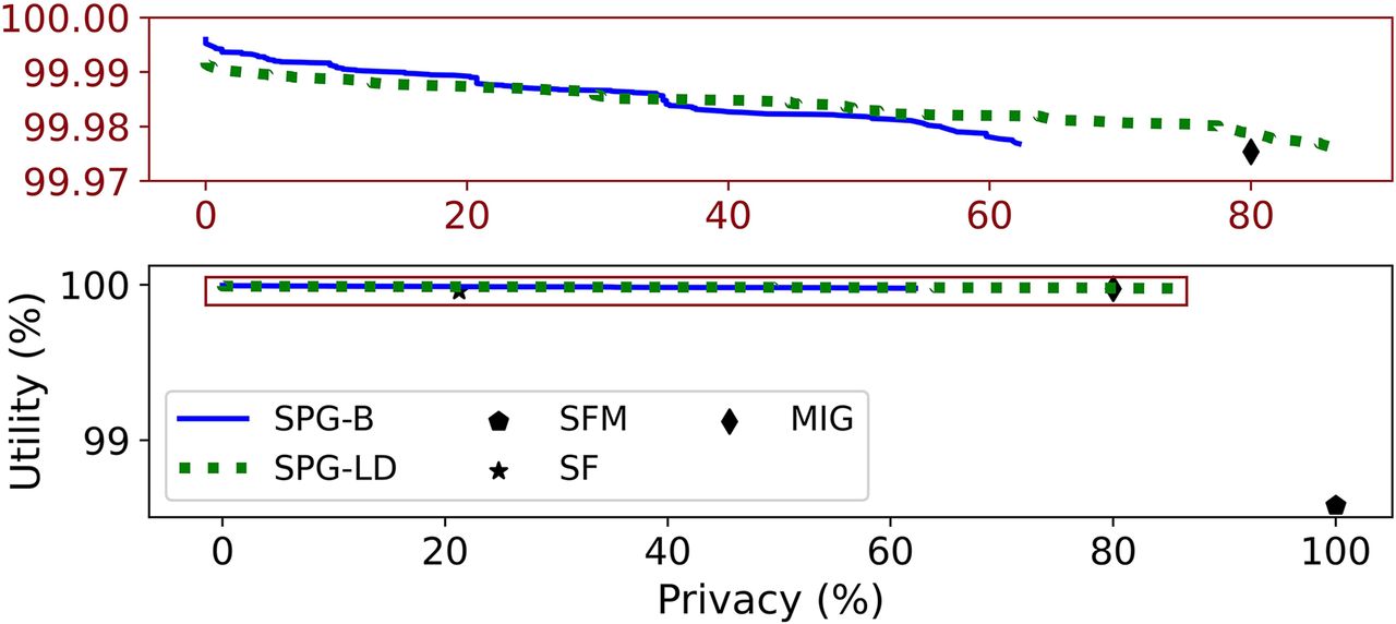 Adaptive threshold attack model, in which the attacker leverages correlation data, baselines flip SNVs.K = 5, baselines only flip SNVs.