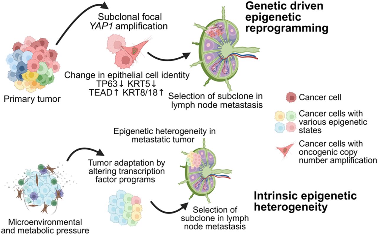 Model of diverse ways in which epigenetic changes can lead to adaptation of cellular phenotype to acquire a more aggressive state and promote HNSCC progression. Created with bioRender (https://www.biorender.com/) under publication license GS26ET99NE.