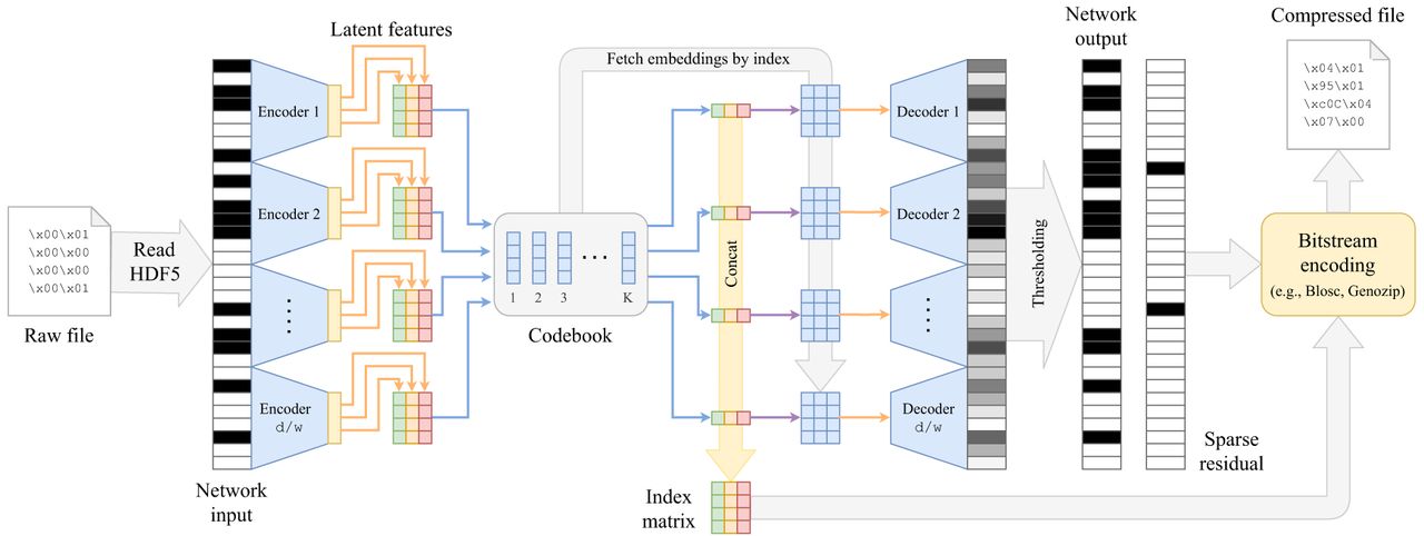 r which, together with the index matrix, can be integrated in any bitstream-coding-based compression pipeline, such as Genozip