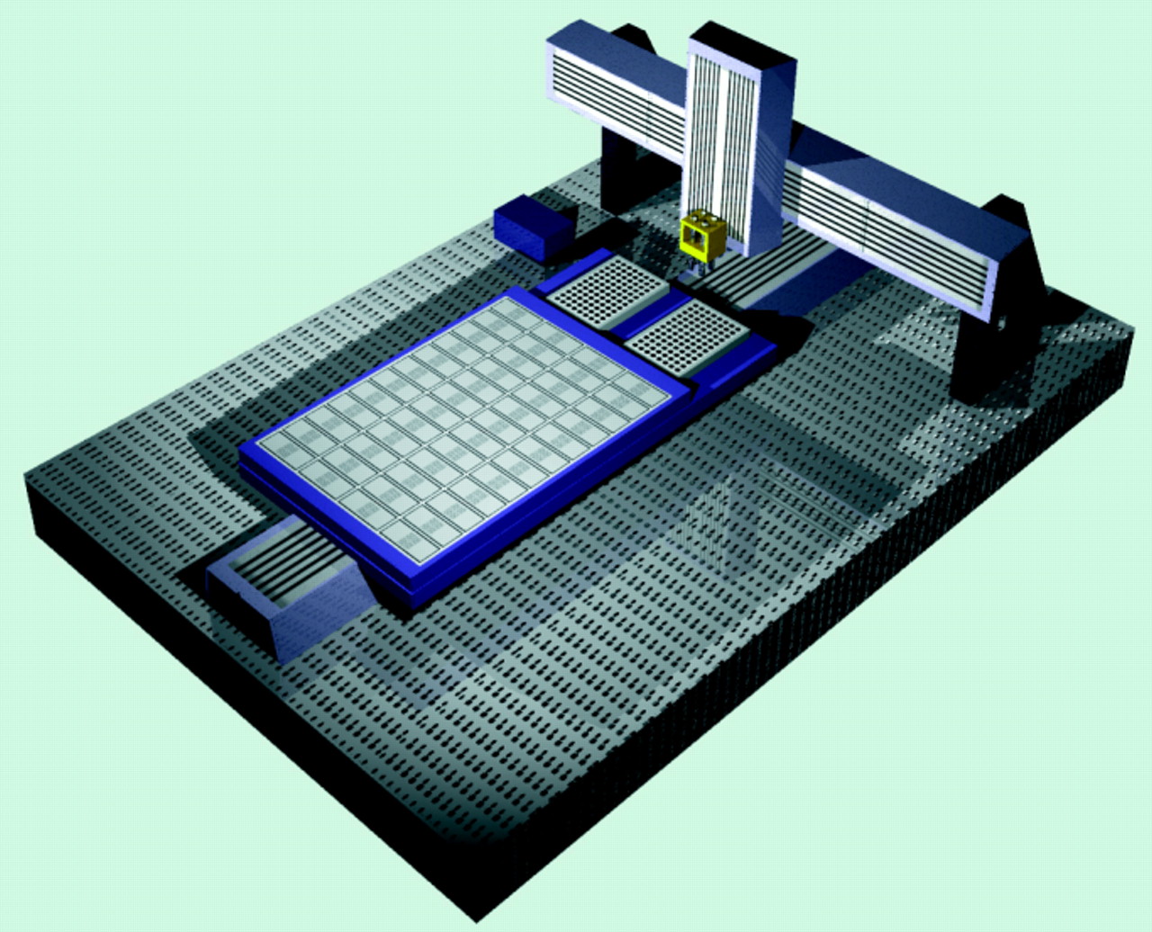 Schematic of the arrayer designed in Patrick Brown’s laboratory. Shown is the basic system. Three servo-motor powered linear rail tables (Daedal Series 500000) are mounted on an anti-vibration table (Newport). Inside the PC, a Galil DMC-630 controller card (Galil Motion Control, Sunnyvale, CA) controls the system via communication through a 60 pin ribbon cable to the Galil power supply and servo driver.