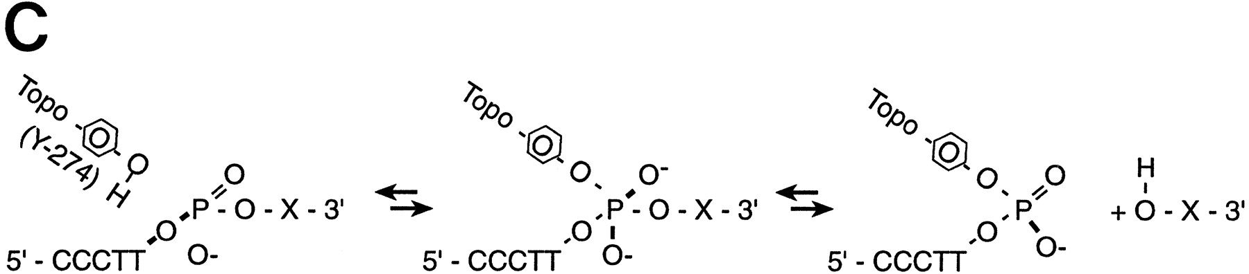 (A) Conventional techniques used to clone PCR products include (1) restriction-cutback methods, in which a restriction endonuclease is used to cleave both DNA insert and vector, leaving complementary overhangs; (2) blunt-end cloning, in which both insert and vector are prepared to have blunt ends; (3) TA Cloning uses the thermophilicTaqI polymerase to add a single 3′A overhang to each end of a PCR product, which can then be joined to a TA Cloning vector with single 3′T overhangs. All three methods involve a second step in which the PCR product and the vector are joined by the action of DNA ligase. (B) During DNA relaxation, the enzyme Vaccinia DNA topoisomerase I cleaves the phosphodiester backbone of one strand at a consensus pentapyrimidine element 5′-(C/T)CCTT in the scissile strand, allowing the DNA to unwind and reduce its winding (W) number,n, to n+1 or n−1 (for DNA that was negatively or positively supercoiled, respectively). (C) In the cleavage reaction, bond energy is conserved by formation of a covalent adduct between the 3′ phosphate of the incised strand and a tyrosyl residue (Tyr-274) of the protein. The covalent complex can reclose across the same bond originally cleaved or it can combine with a heterologous acceptor DNA that has a 5′ hydroxyl tail complementary to that of the adduct, and thereby create a recombinant molecule. (D) Topoisomerase I-mediated cloning uses the reaction mediated by Vaccinia DNA topoisomerase I to join PCR-amplified DNA fragments into plasmid vectors. PCR fragments have 5′ hydroxyl residues from the primers used for the amplification reaction, and therefore are an ideal substrate for the topoisomerase ligation reaction. The topoisomerase I (solid black shape) is shown linked to the vector through the 3′ phosphate (P) of the incised strand. The PCR product has single 3′ A overhangs (A).